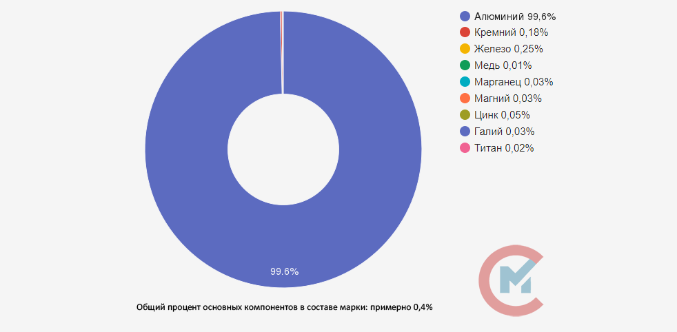 А6 по химическому составу соответствует марке 1060 Американской алюминиевой ассоциации и EN AW-1060 Европейского стандарта.